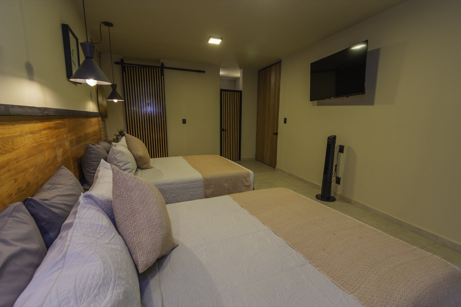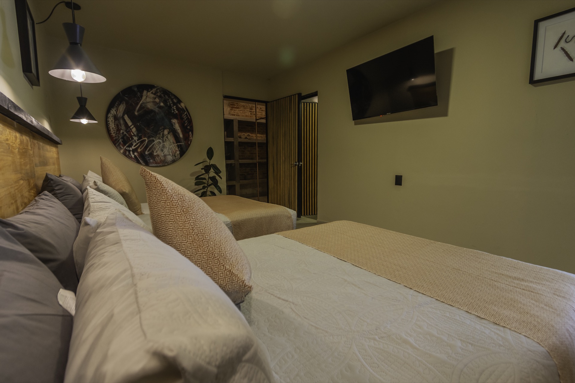 Cuenta con tres habitaciones: dos con dos camas matrimoniales y una con cama king, cada una con baño completo independiente. La propiedad comparte acceso con uno de nuestros lofts, manteniendo siempre la privacidad y comodidad de cada espacio. Dispone de cochera.